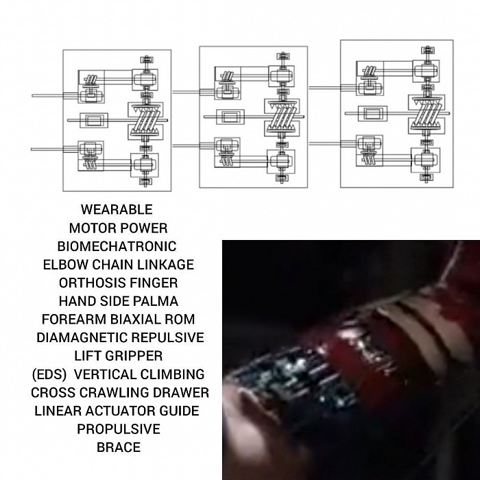 FLYMORTON WEARABLE MOTOR POWER BIOMECHATRONIC HOLLOW OPEN CLEARANCE THREADED LEED THREADED SCREW THREADED ROD WORM GEAR DRIVEN ELBOW CHAIN STEPPER MOTOR LINKAGE STRUCTURE ORTHOSIS FINGER HAND SIDE PALMA FOREARM BIAXIAL ROM DIAMAGNETIC REPULSIVE LIFT GRIPPER (EDS) VERTICAL CLIMBING CROSS CRAWLING DRAWER LINEAR GUIDE SEPARATE GAUNTLET DIAMAGNETIC REPULSIVE PART FOREARM MANNED UAV REPULSIVE ARMOR BRACE SUBJECT NOT LIMITING TO ADDITIONAL SYSTEM OR STRUCTURE POTENTIOMETRIC RANGE INVENTOR JERMAINE MORTON DESIGN