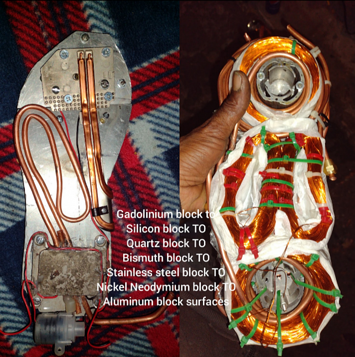 METHOD OR APPROACH COOLING MAGNET WIRE COPPER MAGNETIC LEVITATION COIL TRANSDUCTOR TWO OR ONE (DC) PHASE AUDIO WIRE METHOD (MAGNETIC REFRIGERATION) OF AWG# 24 INDUCTOR WIRE CATHODE ANODE CURRENT CARRYING TWO OR ONE PHASE WIRE JUNCTION TYPE SEEBECK EFFECTS, PELTIER EFFECTS COOLING INDUCTOR WIRE BARING THERMOCOUPLE CURRENT CARRYING FUNCTIONAL LIKENESSES AS AN BRUSH ROTARY THERMOCOUPLE CURRENT CARRYING JUNCTION PHASE WIRE BYPASS JUNCTION MATERIALS SILICON BRUSH BLOCK FILAMENT BISMUTH CORE STAINLESS STEEL BARING MAGNET COPPER AUDIO WIRING ACTION CURRENT CARRYING BLOCK BRUSH GENERATOR CHARGE JUNCTION BYPASS TYPE ROTARY SHAPE SPHERICAL MATERIAL SILICON CORE CONTAINS BISMUTH FILAMENT BARING STAINLESS STEEL BARING COPPER COATED AUDIO WIRING CURRENT CARRYING PHASE BY JUNCTION BYPASS THERMOCOUPLE CURRENT CARRYING MATERIALS SILICON BRUSH BLOCK BISMUTH FILAMENT CORE STAINLESS STEEL BARING MAGNET COPPER AUDIO WIRING ACTION CURRENT CARRYING BLOCK BRUSH. THERMOCOUPLE SPHERICAL ROTARY JUNCTION MAGNETIC REFRIGERATION APPROACH SOLENOID PULL PUSH GADOLINIUM BORE APPLICATION INTRODUCED SILICON SPHERICAL ROTARY REACTOR TYPE THERMOELECTRIC EFFECT REFRIGERATION SEEBECK EFFECTS PELTIER EFFECTS COOLING JUNCTION SILICON BRUSH BARING STAINLESS STEELS SUBZERO TEMPERATURE to -269°C (-452°F . SYNCHRONOUS AC CHARGED VOLTAGE TRANSFORMER TRANSDUCTOR DIAMAGNETIC REPULSIVE ACTUATOR SELF SUSPENSION SELF LEVITATION ANTI-GRAVITY UAV MACHINES SUBJECT NOT LIMITING TO ADDITIONAL SYSTEM OR STRUCTURE INVENTOR JERMAINE MORTON DESIGN